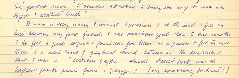 It was a warm and cordial discussion and at the end I felt we had become very good friends ... I feel a great respect and fondness for him as a person and believe, too, that there is a real spiritual bond between us. (1)